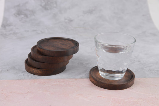 Wooden Round Pedestal Drink Coasters - Set of 5